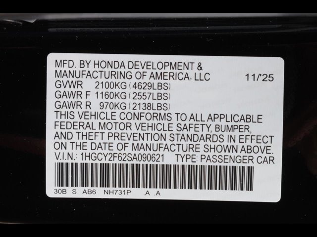 - VIN : 1HGCY2F62SA090621