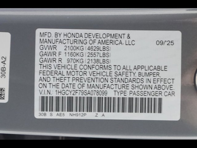 - VIN : 1HGCY2F79SA078099