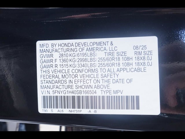 - VIN : 5FNYG1H40SB166504
