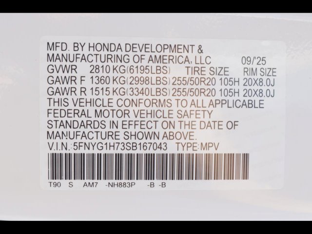 - VIN : 5FNYG1H73SB167043