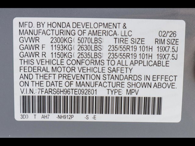 - VIN : 7FARS6H96TE092801