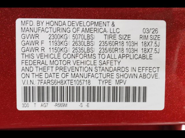 - VIN : 7FARS6H8XTE105718