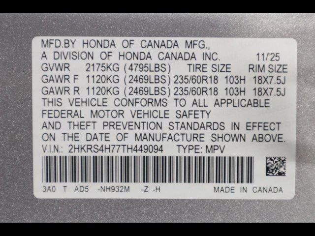 - VIN : 2HKRS4H77TH449094
