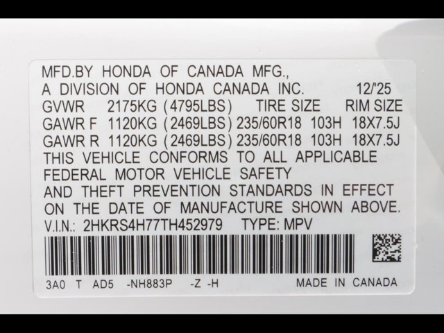 - VIN : 2HKRS4H77TH452979