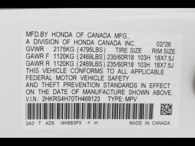 - VIN : 2HKRS4H70TH469123