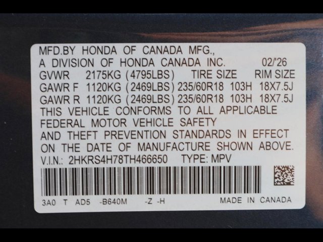- VIN : 2HKRS4H78TH466650