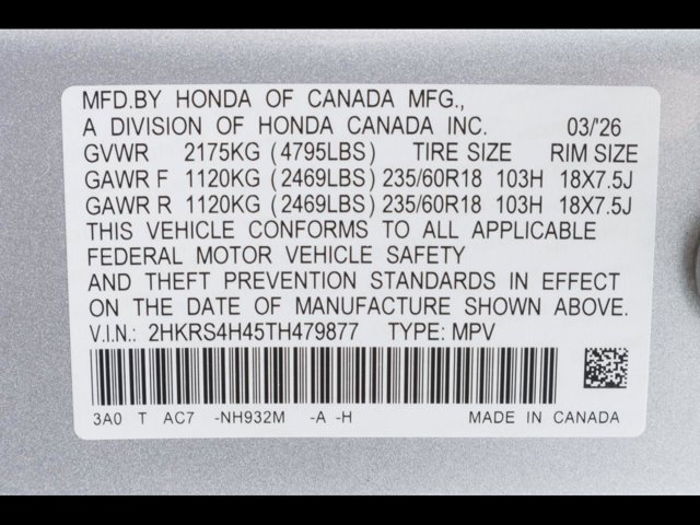 - VIN : 2HKRS4H45TH479877