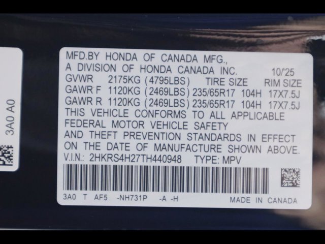- VIN : 2HKRS4H27TH440948