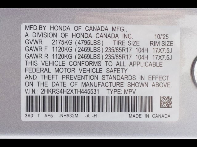- VIN : 2HKRS4H2XTH445531