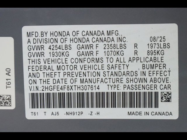 - VIN : 2HGFE4F8XTH307614
