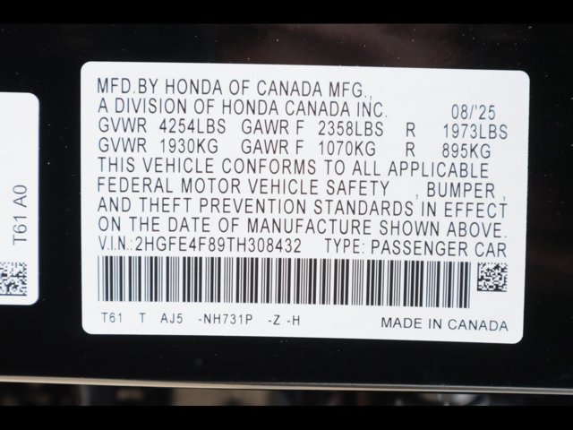 - VIN : 2HGFE4F89TH308432