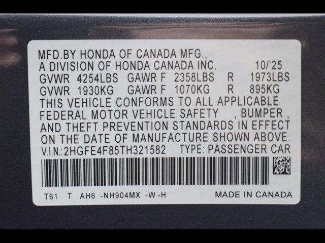 - VIN : 2HGFE4F85TH321582