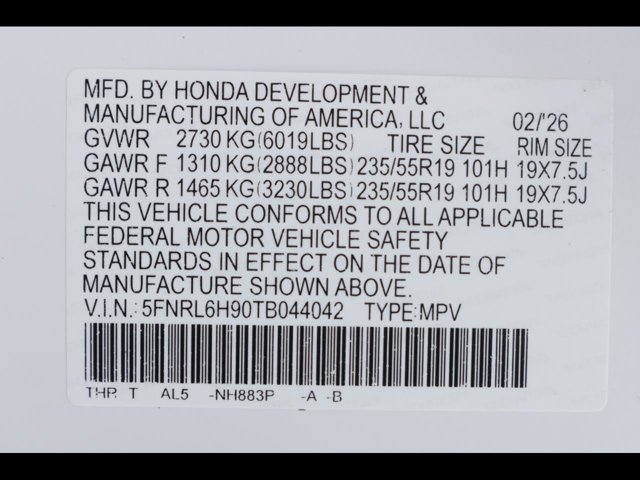 - VIN : 5FNRL6H90TB044042