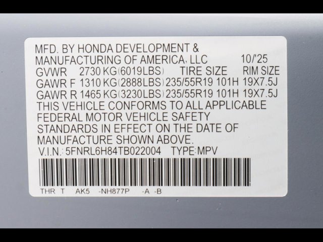 - VIN : 5FNRL6H84TB022004