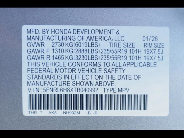 - VIN : 5FNRL6H8XTB040992