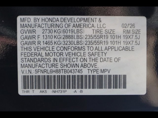 - VIN : 5FNRL6H88TB043745