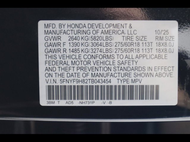 - VIN : 5FNYF9H82TB043454