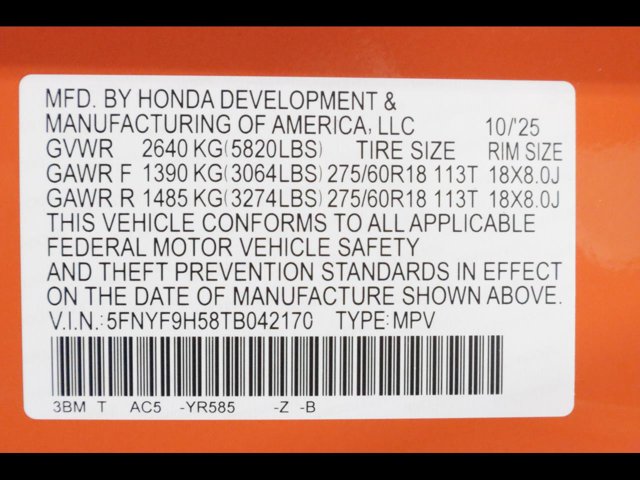 - VIN : 5FNYF9H58TB042170