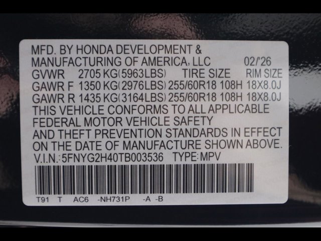 - VIN : 5FNYG2H40TB003536