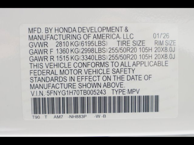 - VIN : 5FNYG1H70TB005243