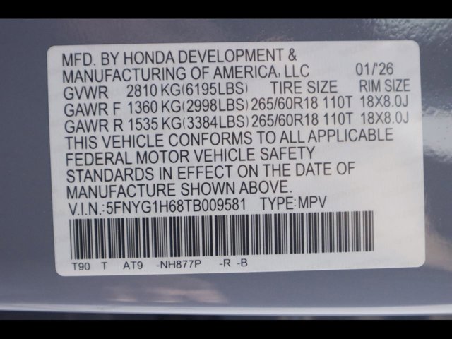 - VIN : 5FNYG1H68TB009581