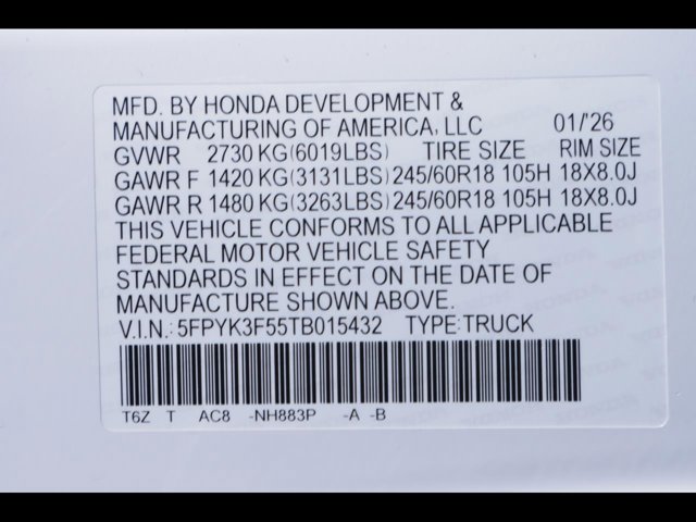 - VIN : 5FPYK3F55TB015432