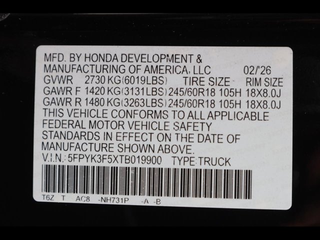 - VIN : 5FPYK3F5XTB019900