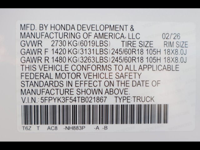 - VIN : 5FPYK3F54TB021867