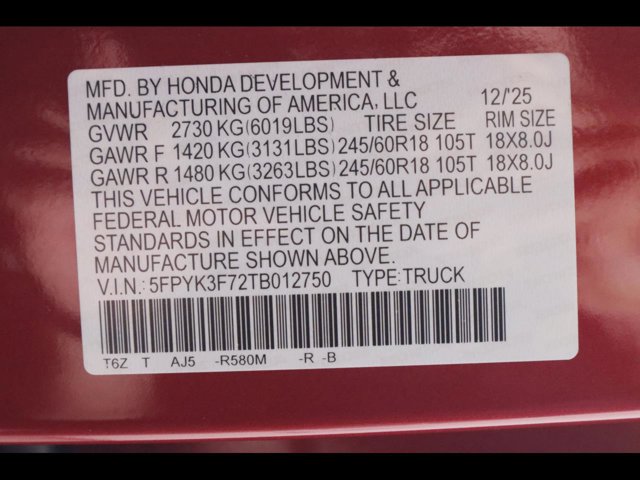 - VIN : 5FPYK3F72TB012750