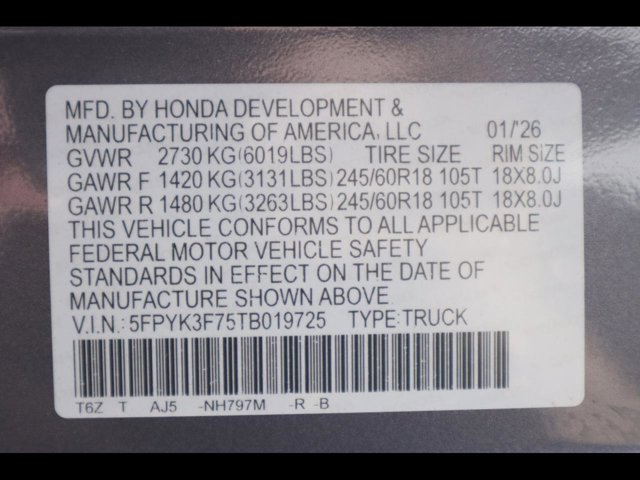 - VIN : 5FPYK3F75TB019725