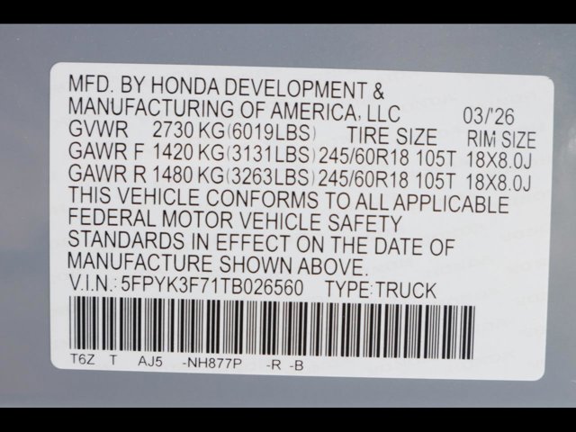 - VIN : 5FPYK3F71TB026560