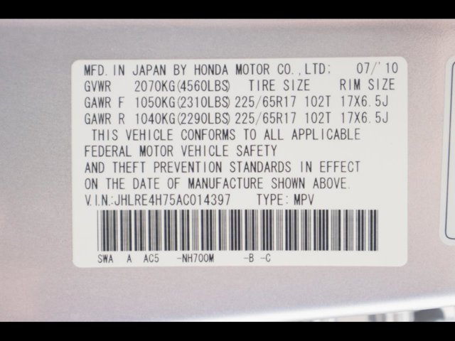 - VIN : JHLRE4H75AC014397