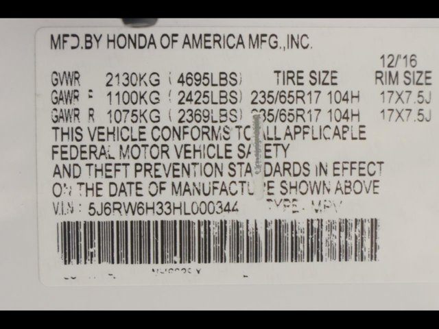 - VIN : 5J6RW6H33HL000344