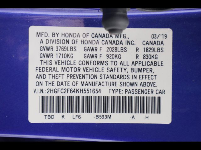 - VIN : 2HGFC2F64KH551654