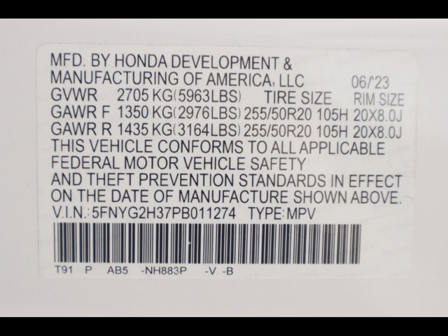 - VIN : 5FNYG2H37PB011274