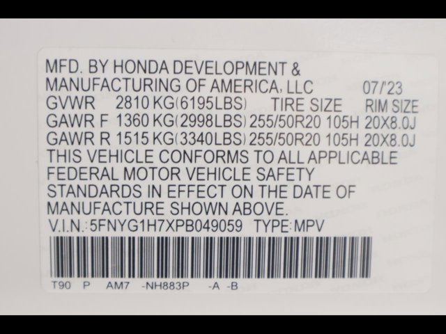 - VIN : 5FNYG1H7XPB049059