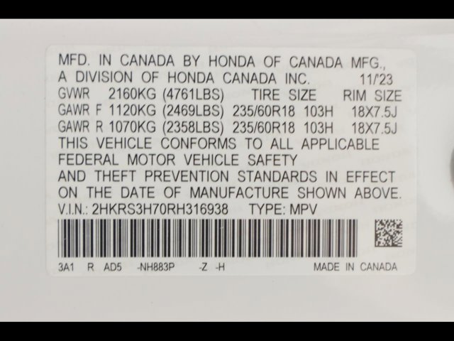 - VIN : 2HKRS3H70RH316938