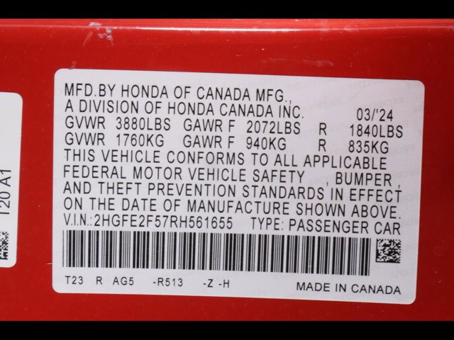 - VIN : 2HGFE2F57RH561655