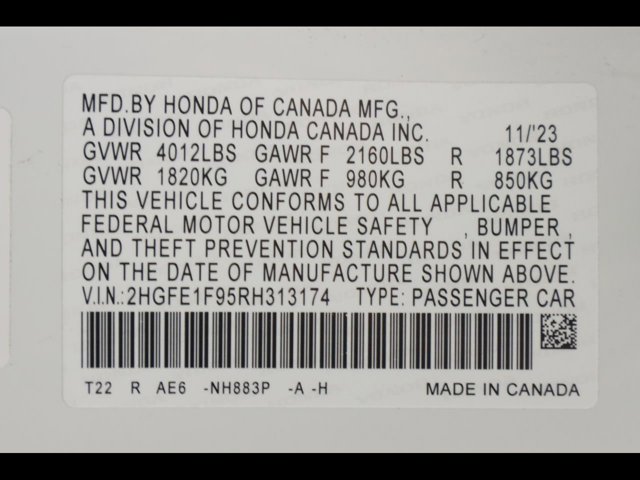 - VIN : 2HGFE1F95RH313174