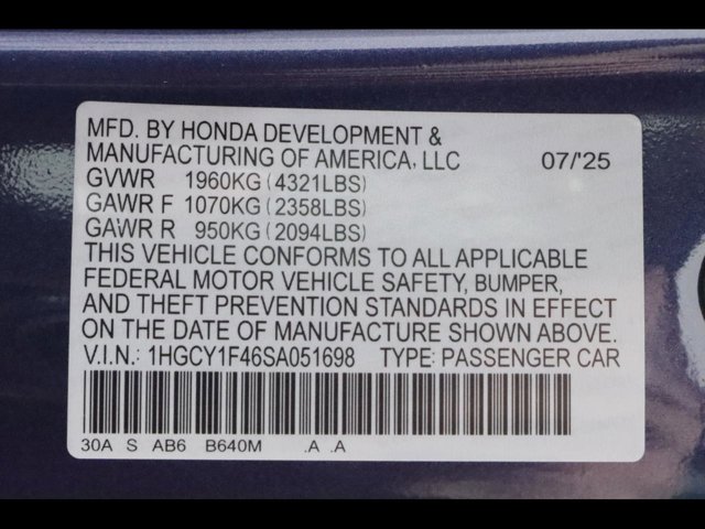 - VIN : 1HGCY1F46SA051698