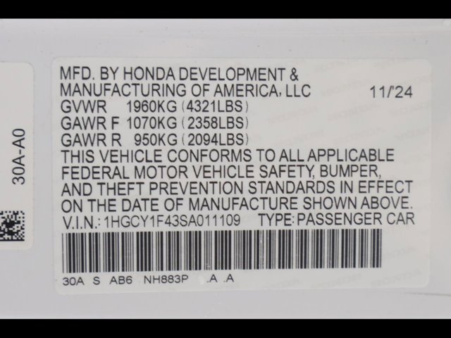 - VIN : 1HGCY1F43SA011109