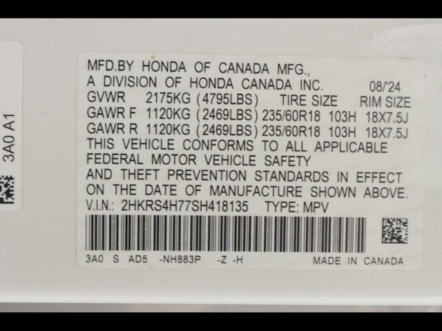 - VIN : 2HKRS4H77SH418135