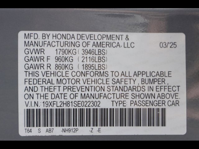 - VIN : 19XFL2H81SE022302