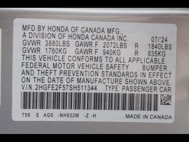 - VIN : 2HGFE2F57SH511344