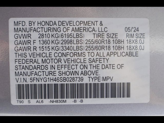 - VIN : 5FNYG1H46SB028739