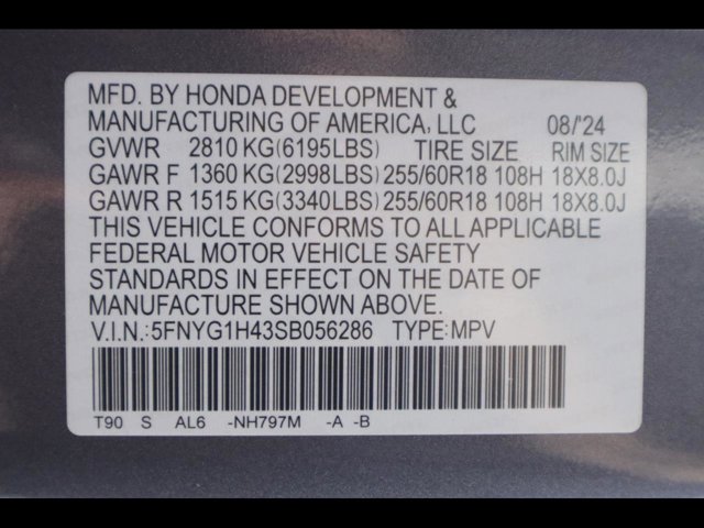 - VIN : 5FNYG1H43SB056286