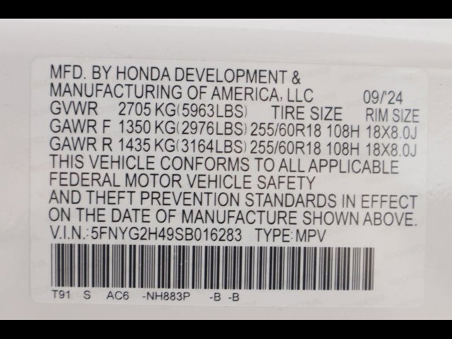 - VIN : 5FNYG2H49SB016283