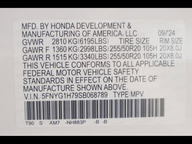 - VIN : 5FNYG1H79SB068789